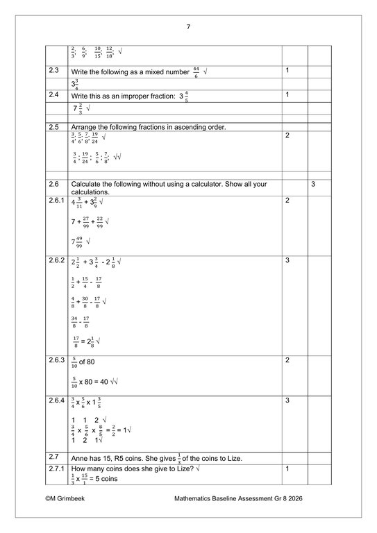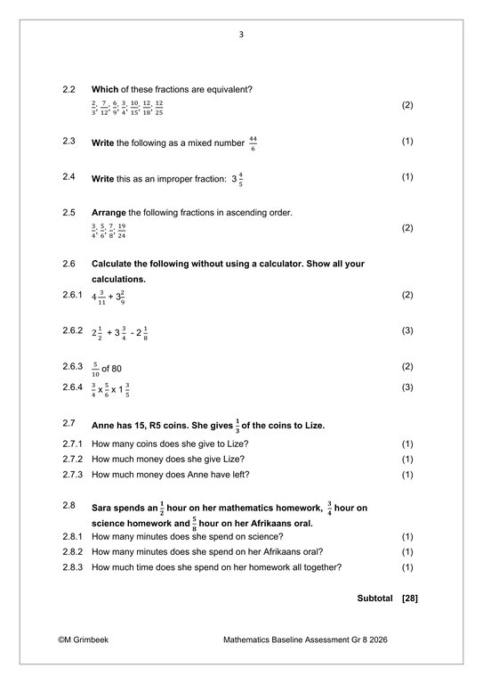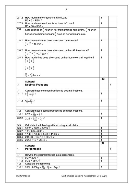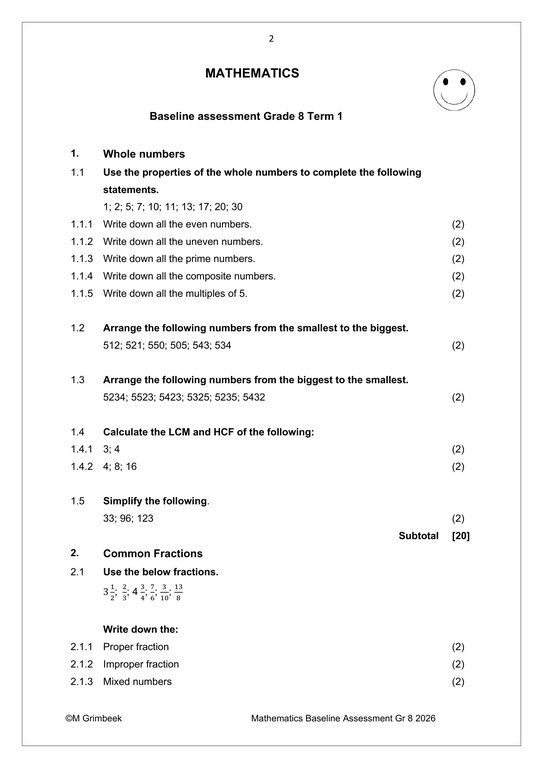Mathematics Gr. 8 Baseline assessment 2026