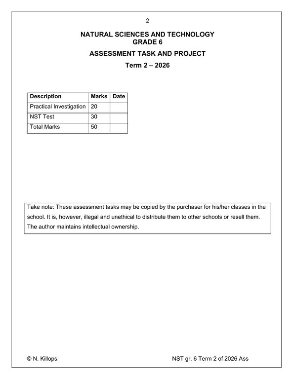 Natural Sciences and Technology Gr. 6 Assessment Task 2026 Term 2