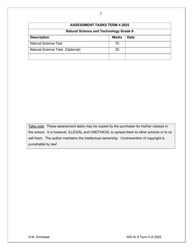 Natural Sciences Gr. 8 Assessment Task 2025 Term 4