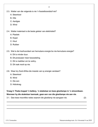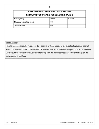 Natuurwetenskap en Tegnologie Gr. 6 Assesseringstaak 2025 Kwartaal 4