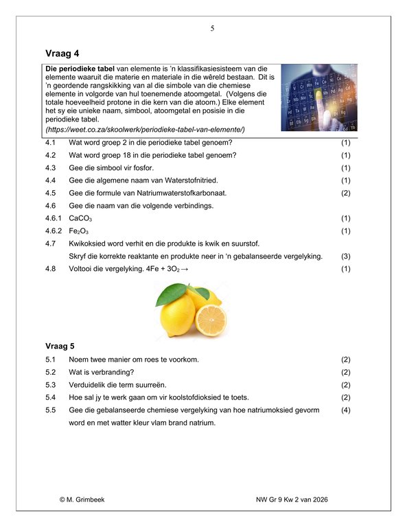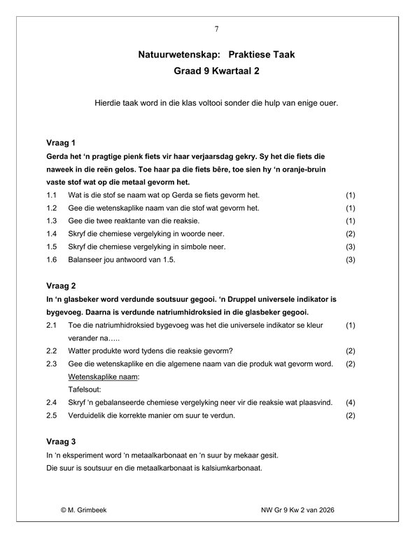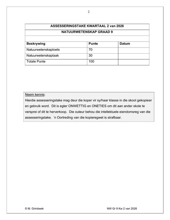 Natuurwetenskap Gr. 9 Assesseringstaak 2026 Kwartaal 2
