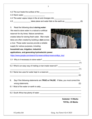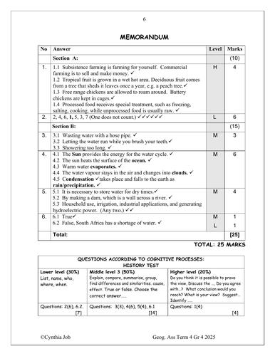 Social Sciences Geography Gr. 4 Assessment Task 2025 Term 4 quantity
