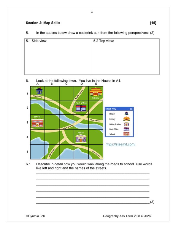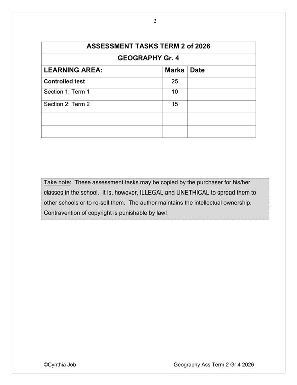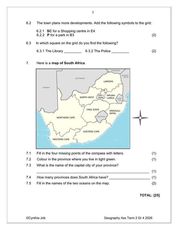 Social Sciences Geography Gr. 4 Assessment Task 2026 Term 2 quantity