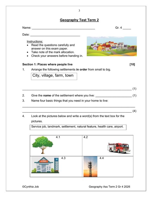 / Social Sciences Geography Gr. 4 Assessment Task 2026 Term 2