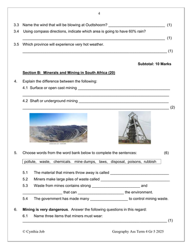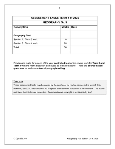 Social Sciences Geography Gr. 5 Assessment Task 2025 Term 4 quantity