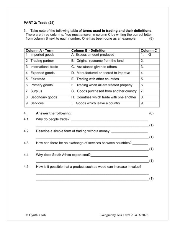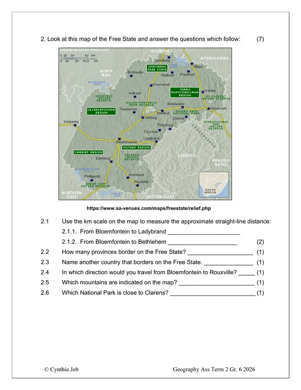 Social Sciences Geography Gr. 6 Assessment Task 2026 Term 2Social Sciences Geography Gr. 6 Assessment Task 2026 Term 2
