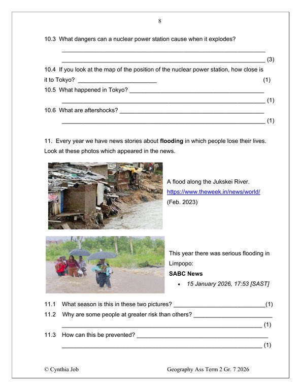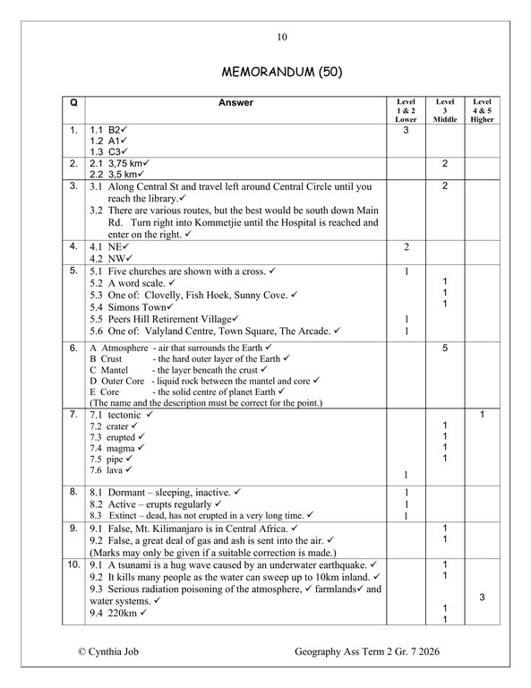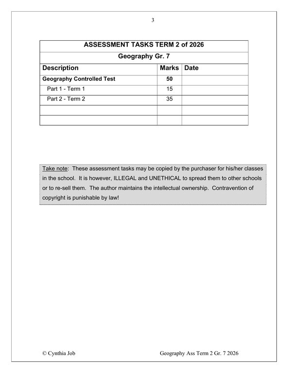 Social Sciences Geography Gr. 7 Assessment Task 2026 Term 2Social Sciences Geography Gr. 7 Assessment Task 2026 Term 2