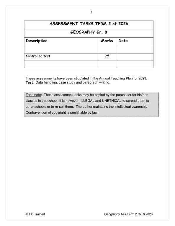Social Sciences Geography Gr. 8 Assessment Task 2026 Term 2Social Sciences Geography Gr. 8 Assessment Task 2026 Term 2
