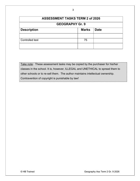 Social Sciences Geography Gr. 9 Assessment Task 2026 Term 2Social Sciences Geography Gr. 9 Assessment Task 2026 Term 2