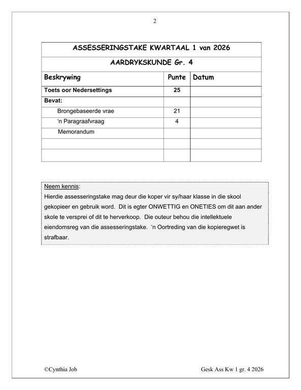 / Sosiale Wetenskap Aardrykskunde Gr. 4 Assesseringstaak 2026 Kwartaal 1