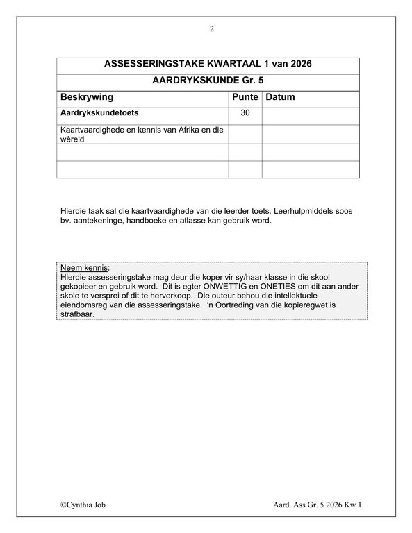 Sosiale Wetenskap Aardrykskunde Gr. 5 Assesseringstaak 2026 Kwartaal 1