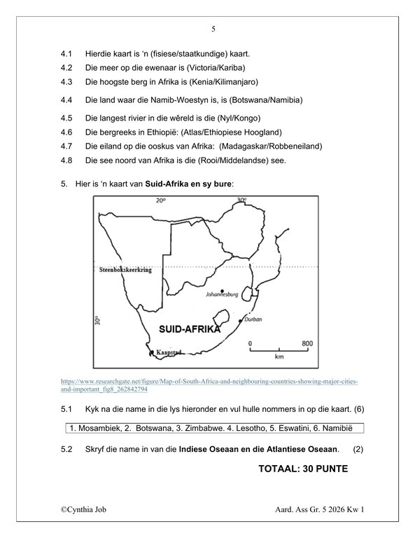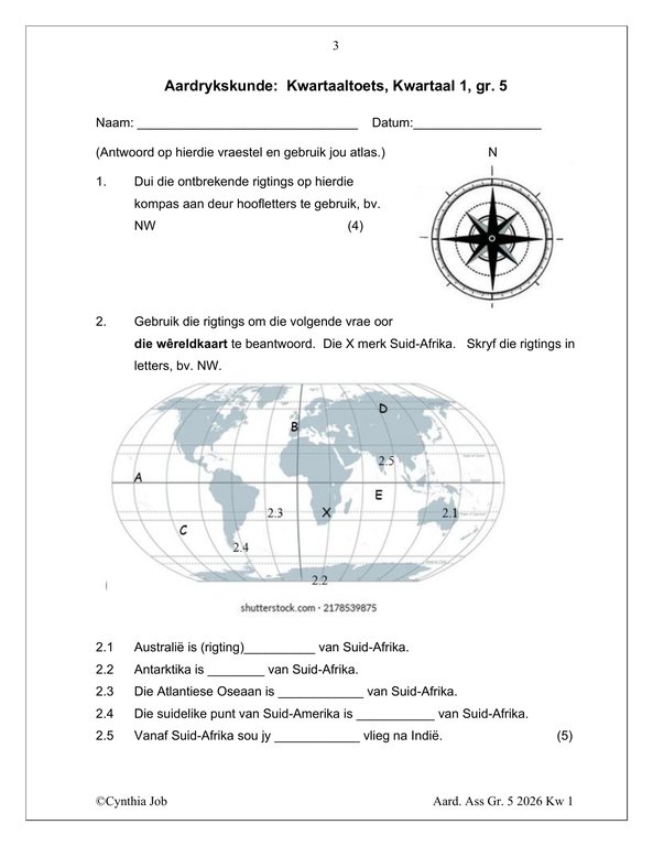 Sosiale Wetenskap Aardrykskunde Gr. 5 Assesseringstaak 2026 Kwartaal 1Sosiale Wetenskap Aardrykskunde Gr. 5 Assesseringstaak 2026 Kwartaal 1