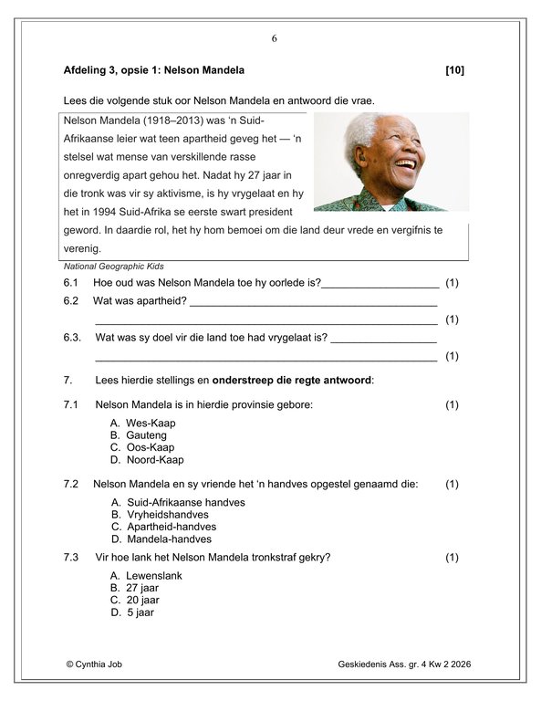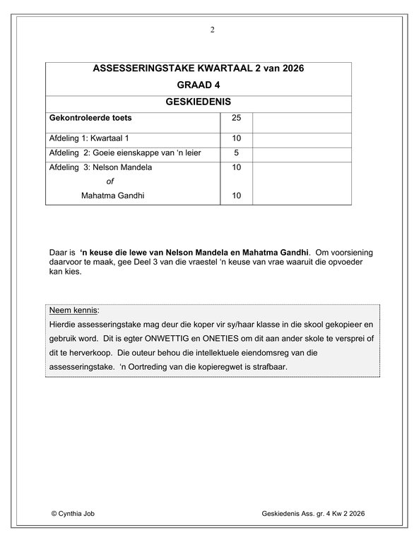/ Sosiale Wetenskap Geskiedenis Gr. 4 Assesseringstaak 2026 Kwartaal 2
