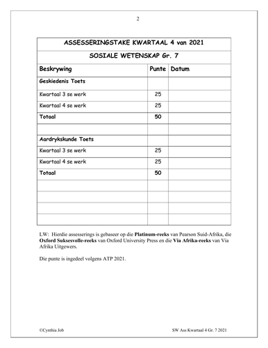 Sosiale Wetenskap Gr. 7 Assesseringstaak 2021 Kwartaal 4