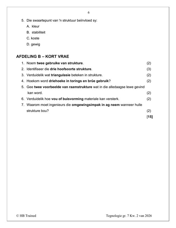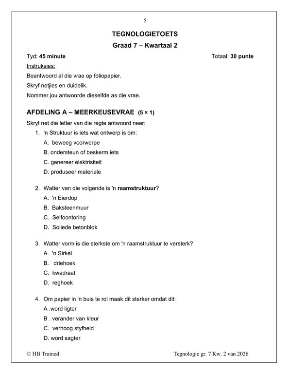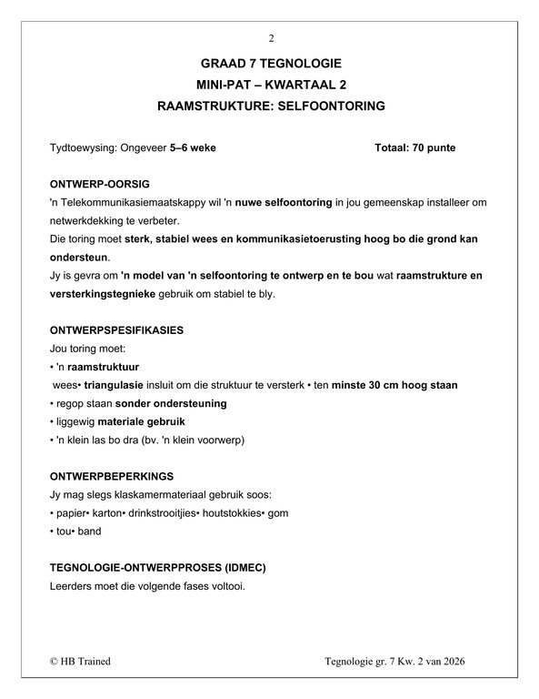 Tegnologie Gr. 7 Assesseringstaak 2026 Kwartaal 2