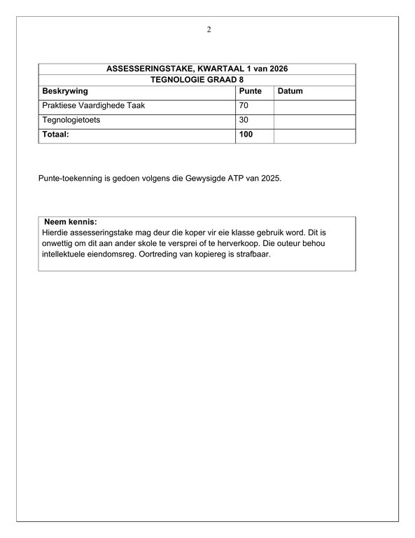 Tegnologie Gr. 8 Assesseringstaak 2026 Kwartaal 1Tegnologie Gr. 8 Assesseringstaak 2026 Kwartaal 1