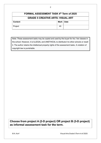Visual Arts Gr. 5 Assessment Task 2025 Term 4Visual Arts Gr. 5 Assessment Task 2025 Term 4