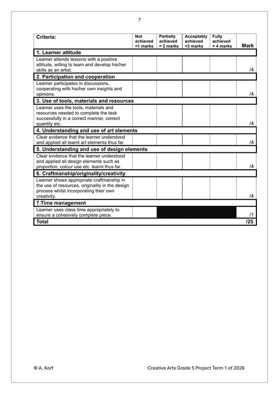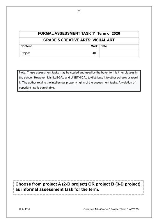 Visual Arts Gr. 5 Assessment Task 2026 Term 1Visual Arts Gr. 5 Assessment Task 2026 Term 1