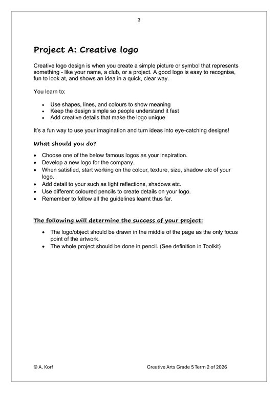 Visual Arts Gr. 5 Assessment Task 2026 Term 2Visual Arts Gr. 5 Assessment Task 2026 Term 2