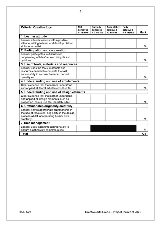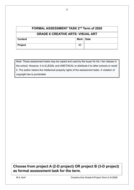 Visual Arts Gr. 6 Assessment Task 2026 Term 2Visual Arts Gr. 6 Assessment Task 2026 Term 2