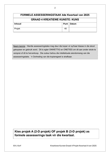 / Visuele Kuns Gr. 4 Assesseringstaak 2025 Kwartaal 4