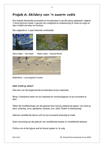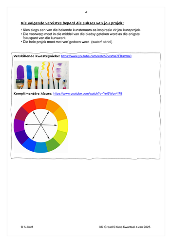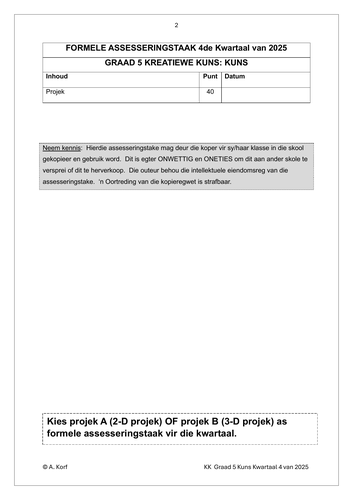 Visuele Kuns Gr. 5 Assesseringstaak 2025 Kwartaal 4Visuele Kuns Gr. 5 Assesseringstaak 2025 Kwartaal 4