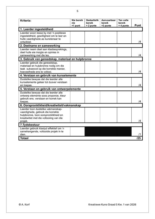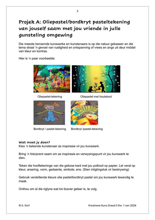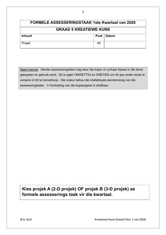 Visuele Kuns Gr. 5 Assesseringstaak 2026 Kwartaal 1Visuele Kuns Gr. 5 Assesseringstaak 2026 Kwartaal 1
