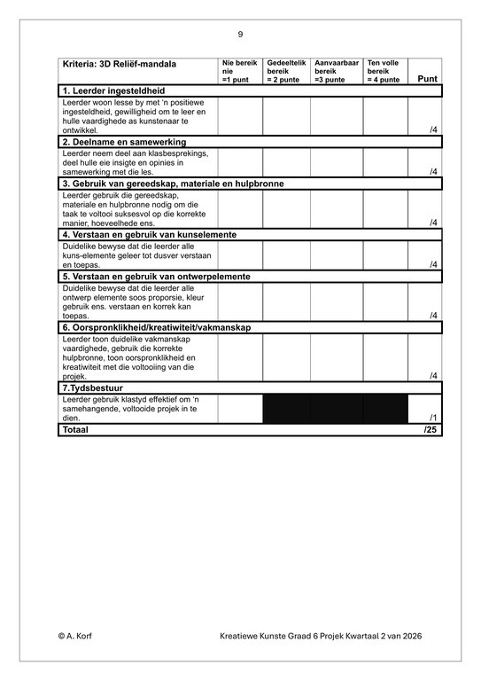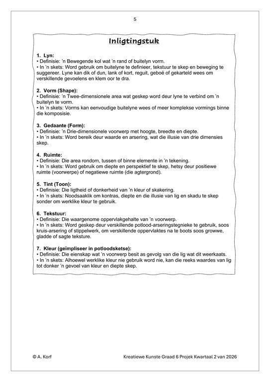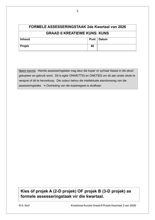 Visuele Kuns Gr. 6 Assesseringstaak 2026 Kwartaal 2
