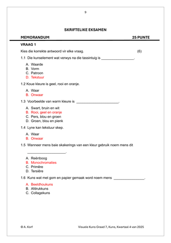 Visuele Kuns Gr. 7 Assesseringstaak 2025 Kwartaal 4 quantity