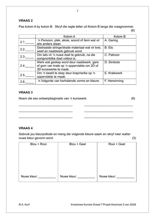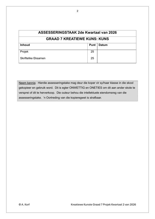 Visuele Kuns Gr. 7 Assesseringstaak 2026 Kwartaal 2