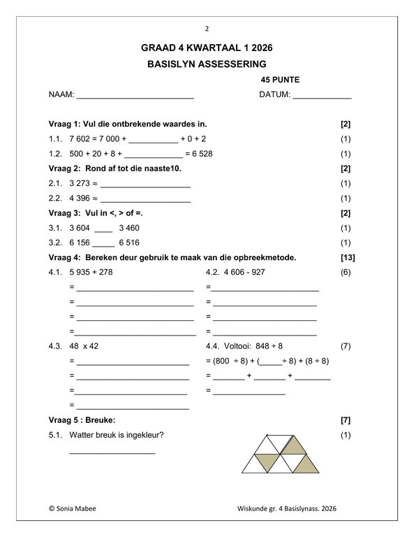 Wiskunde Gr. 4 Basislynassesering 2026 quantity