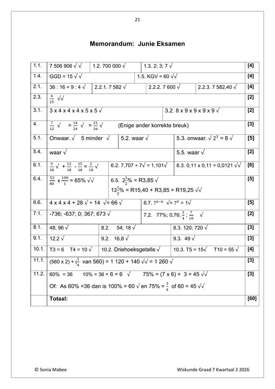 Wiskunde Gr. 7 Assesseringstaak 2026 Kwartaal 2