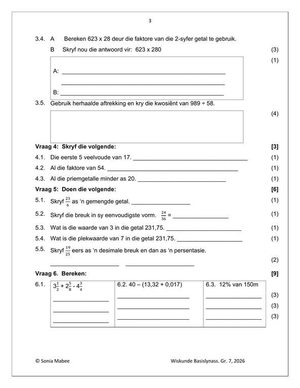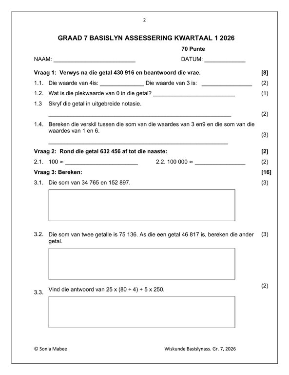 Wiskunde Gr. 7 Basislynassesering 2026 quantity