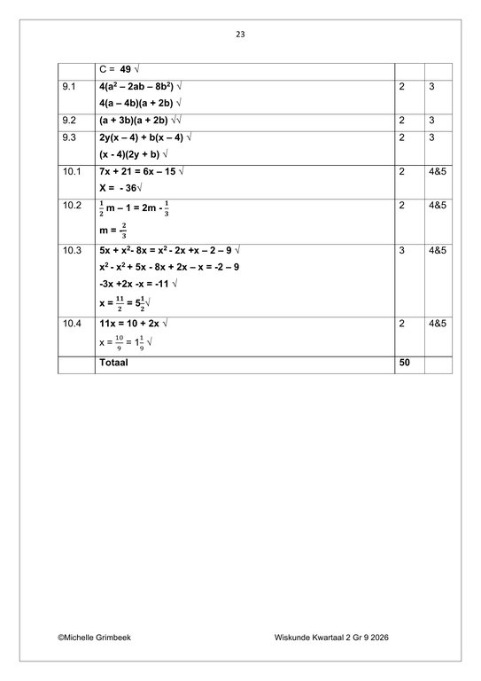 Wiskunde Gr. 9 Assesseringstaak 2026 Kwartaal 2